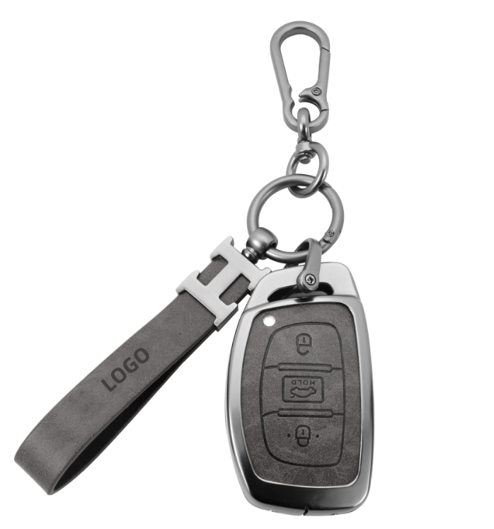 DM 3 bottoms promotional business gifts Zinc Alloy Leather Smart Car Key Case Cover Fob For Hyundai New Santa Fe