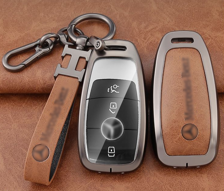 Customize color metal leather car key fob cover case protector for Mercedes benz