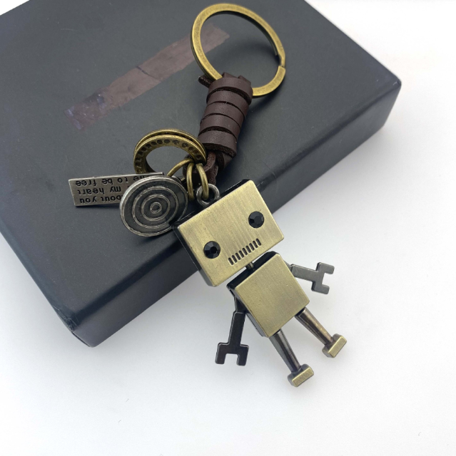 Cute cartoon design metal bronze brown removable robot keychain key chain