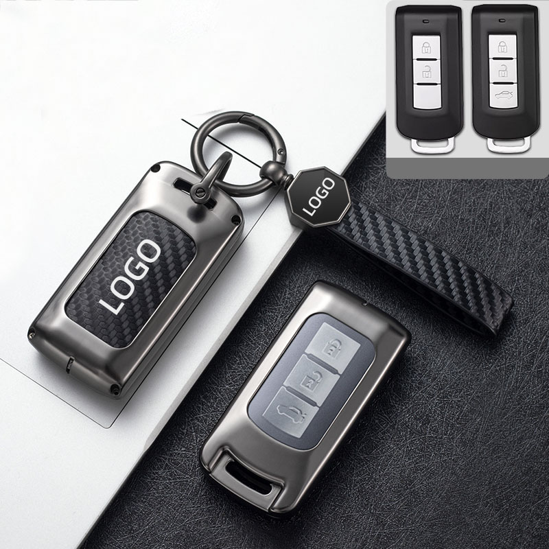Zinc alloy PU leather car remote key fob cover case shell for Mitsubishi Outlander ASX Lancer