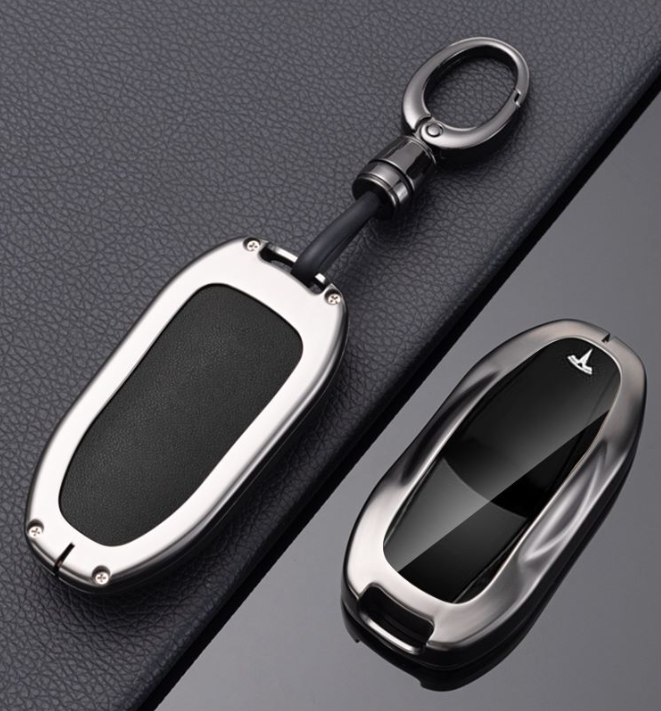 Zinc alloy PU leather car remote key fob cover case for tesla model x model y model 3