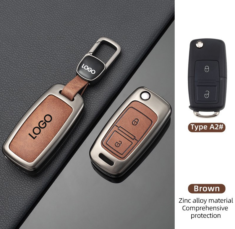 VW polo Tiguan lavida Touran durable luxury zinc alloy metal PU leather car remote key fob cover cas