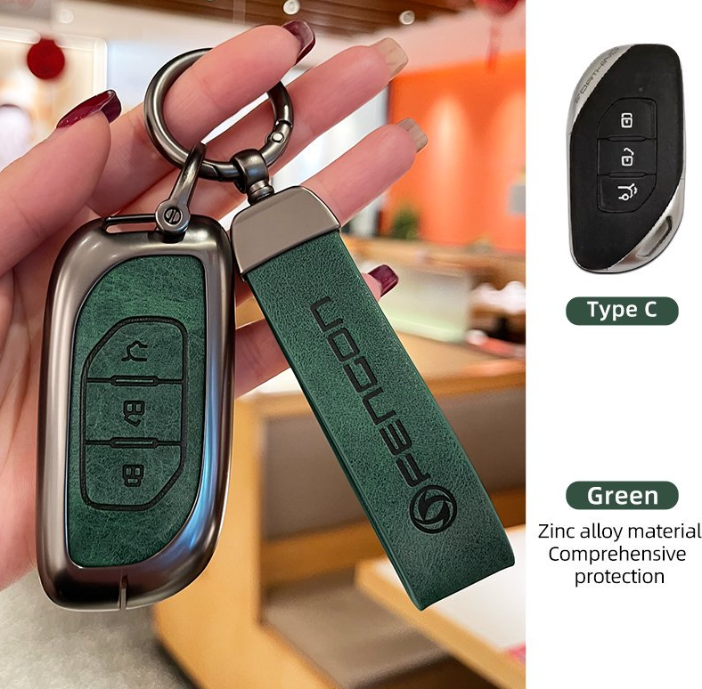 Low MOQ zinc alloy leather metal car key case cover fob replacement for Dongfeng Forthing