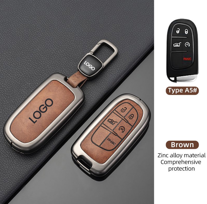 Zinc alloy leather car key case cover shell fob for Jeep