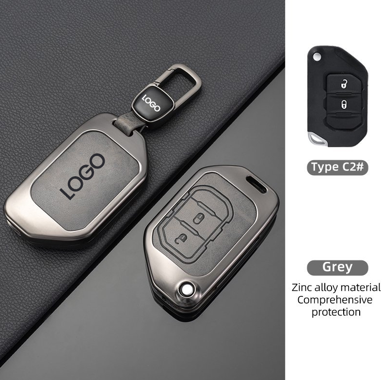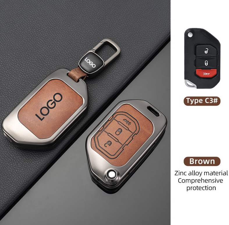 Stylish Zinc Alloy Metal Leather for jeep Compass Car Remote Key case Cover Fob Protector 2 3 Button