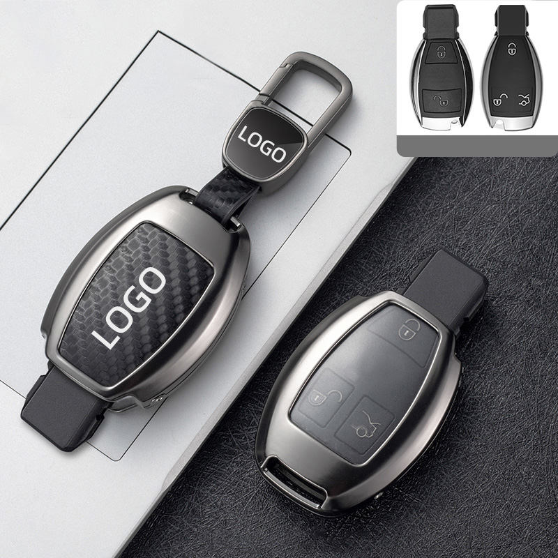 Unisex simple design carbon fiber leather car smart key case cover fob protector for Mercedes Benz