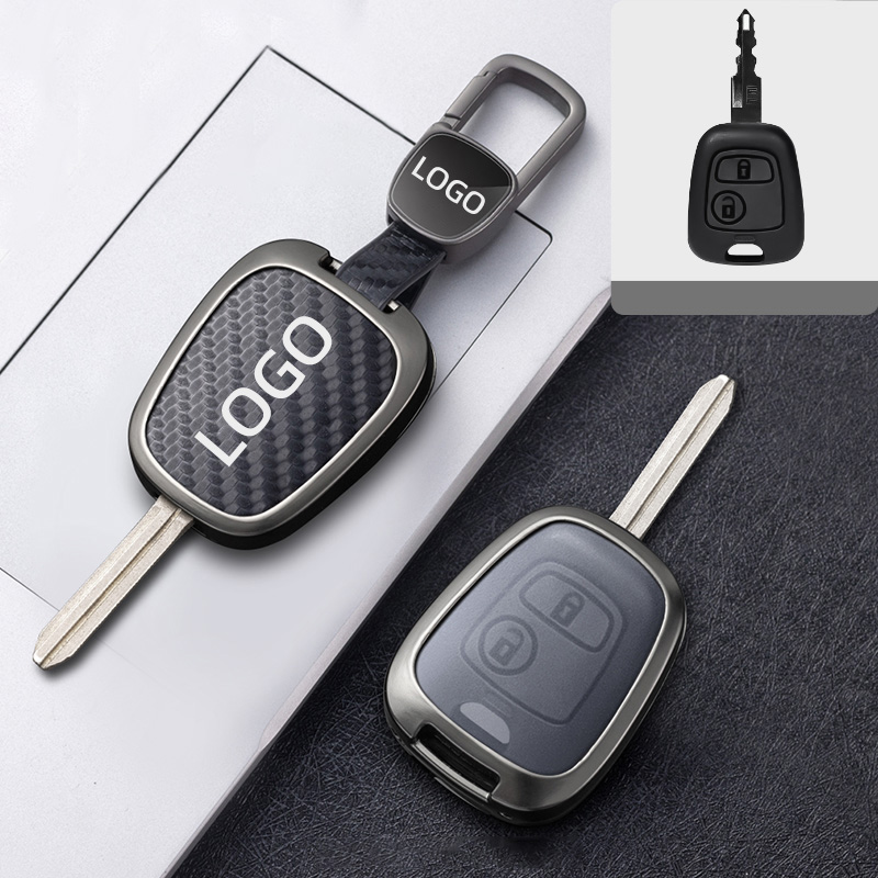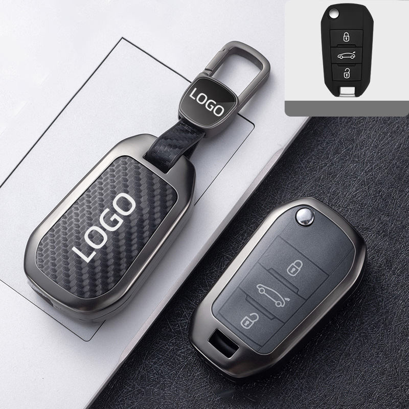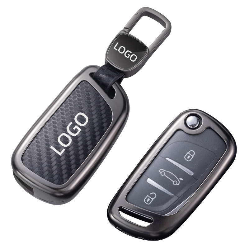 Wholesale carbon fiber metal zinc alloy car fob cover case shell protector for Peugeot