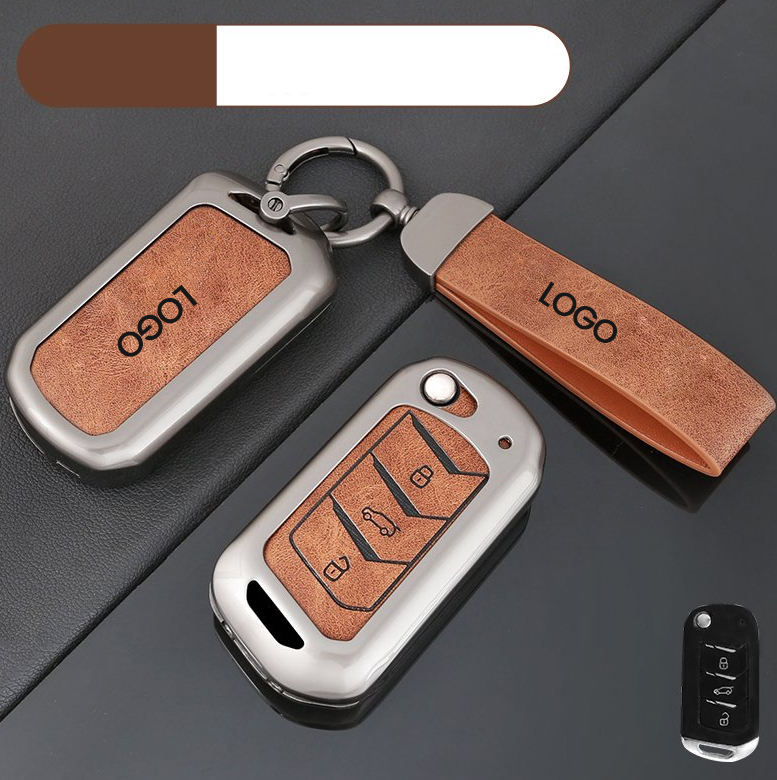 Zinc alumunium leather zinc alloy for Mahindra car key fob cover case skin housing