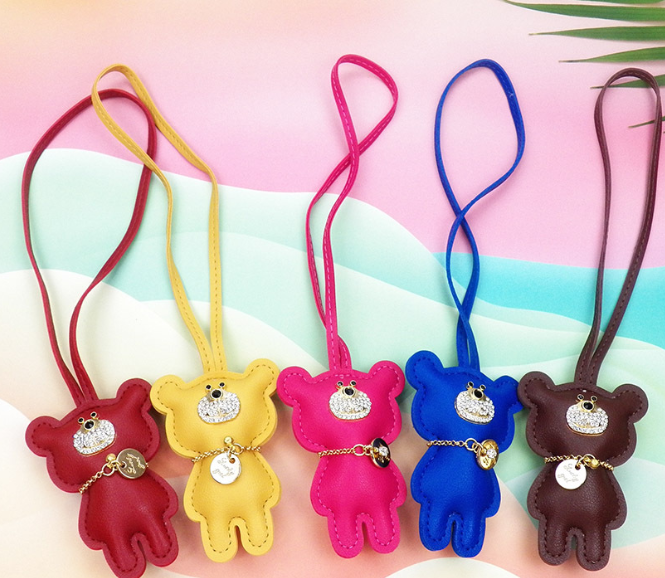 Cute carton design teddy bear diamond leather car keychain handbag charm accessories